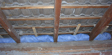 in die leeren Dachgefache ein. Diese Dämmschläuche werden mit Luft